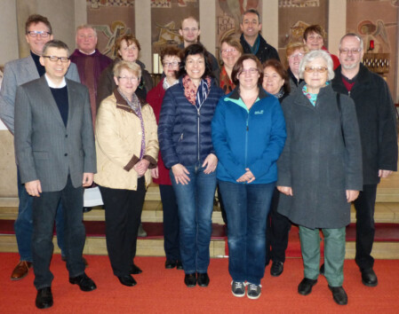 hinten von links nach rechts: Thomas Kramer, Pfarrer Albert Börschlein, Doris Karklis (Schriftführerin), Monika Dreßel, Christian Schmidt, Andrea Guckler, Dr. Christoph Pscherer, Brigitte Loschge, Gemeindereferentin Brigitte Märx, Religionslehrerin im Kirchendienst Elisabeth Gsänger, Dr. Martin Weimer (stellv. Vorsitzender)