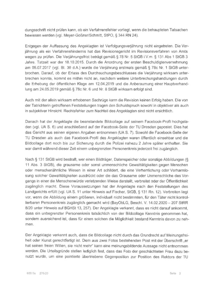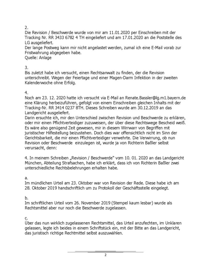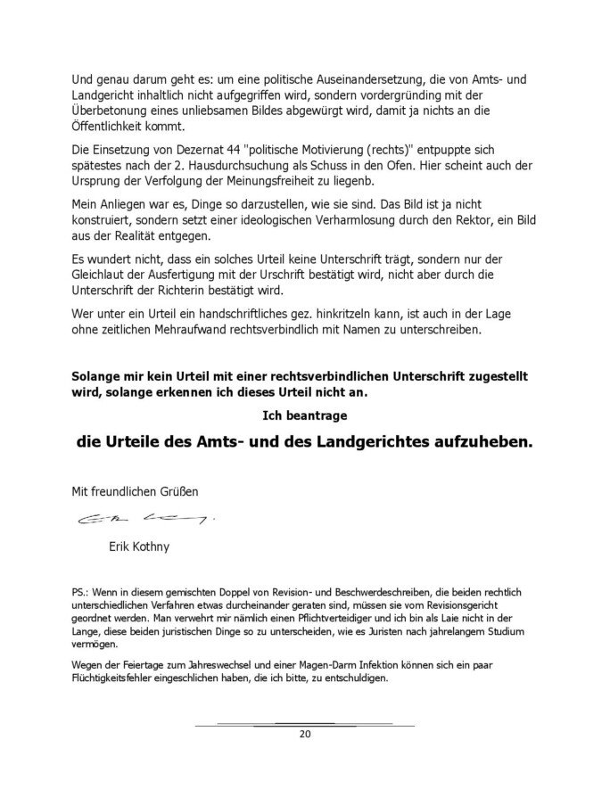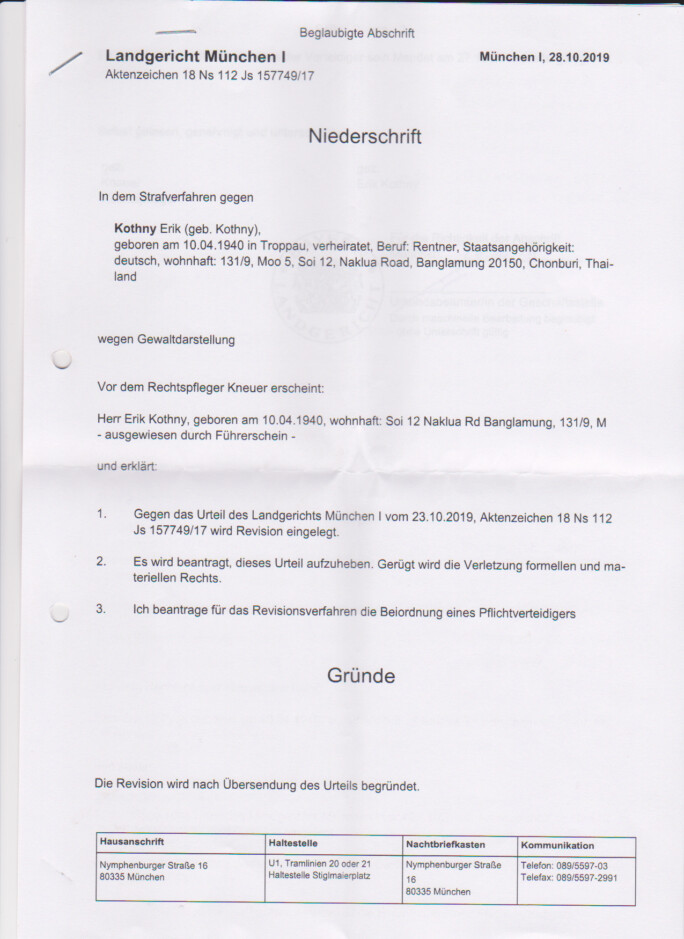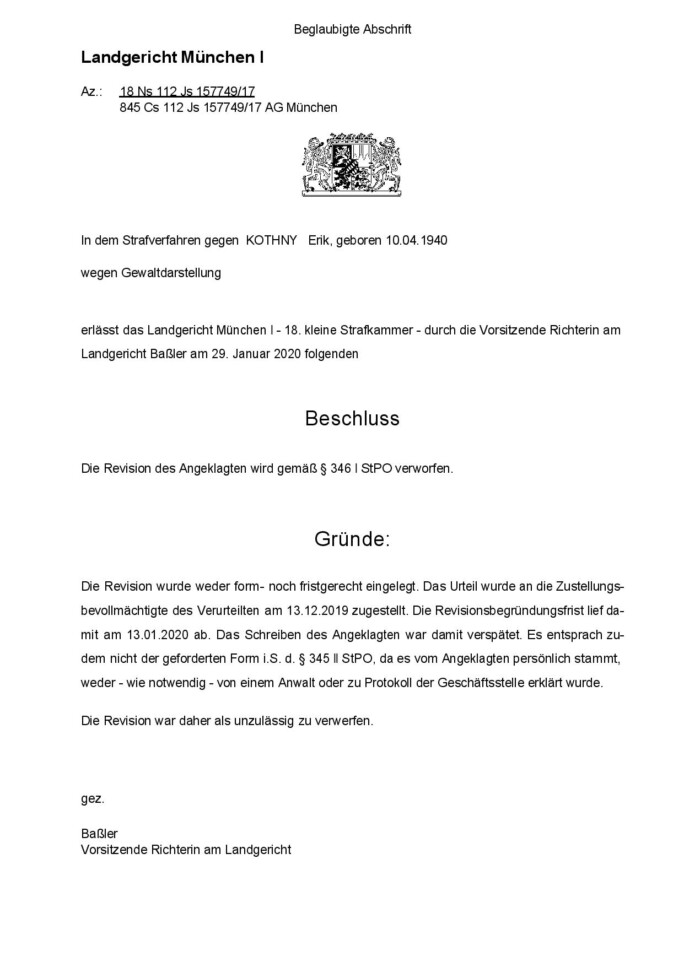 Verwerfung der Revision durch das Landgericht