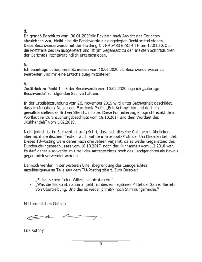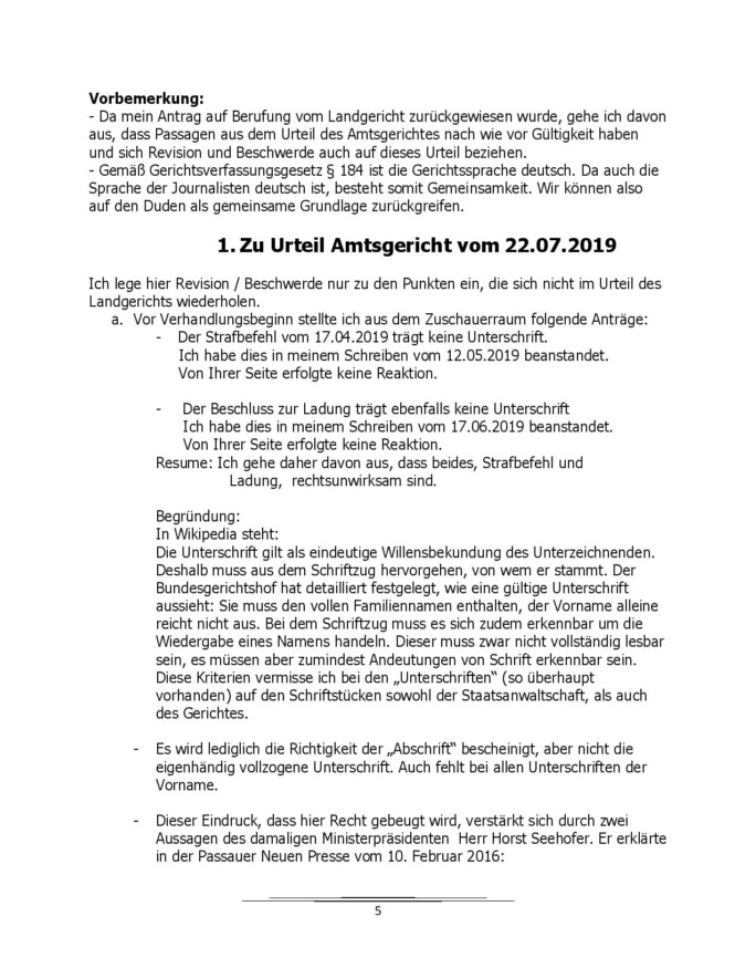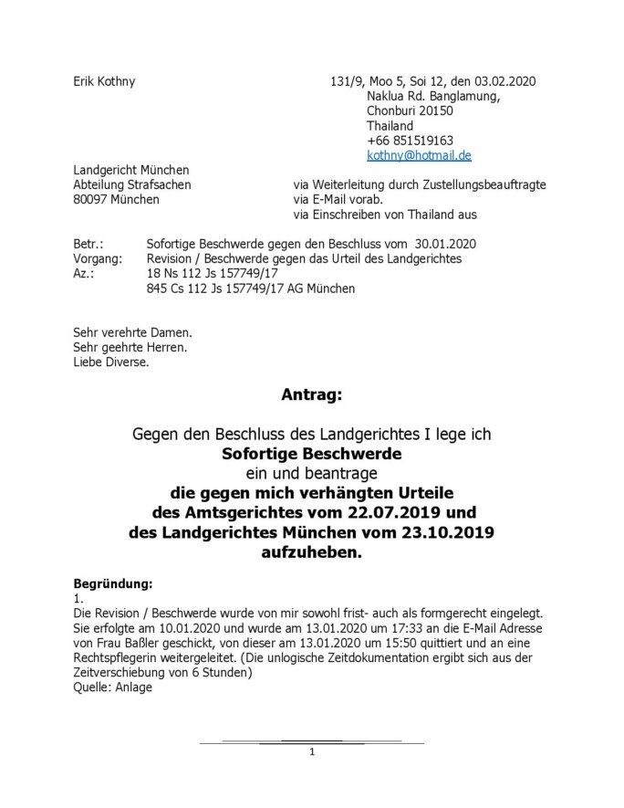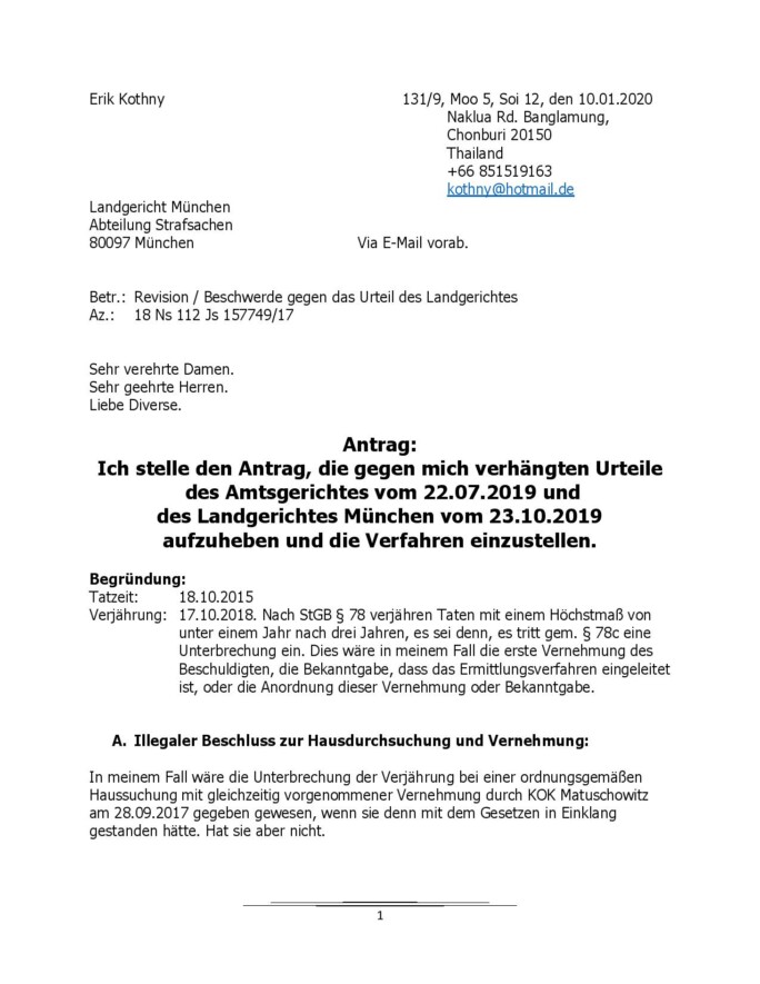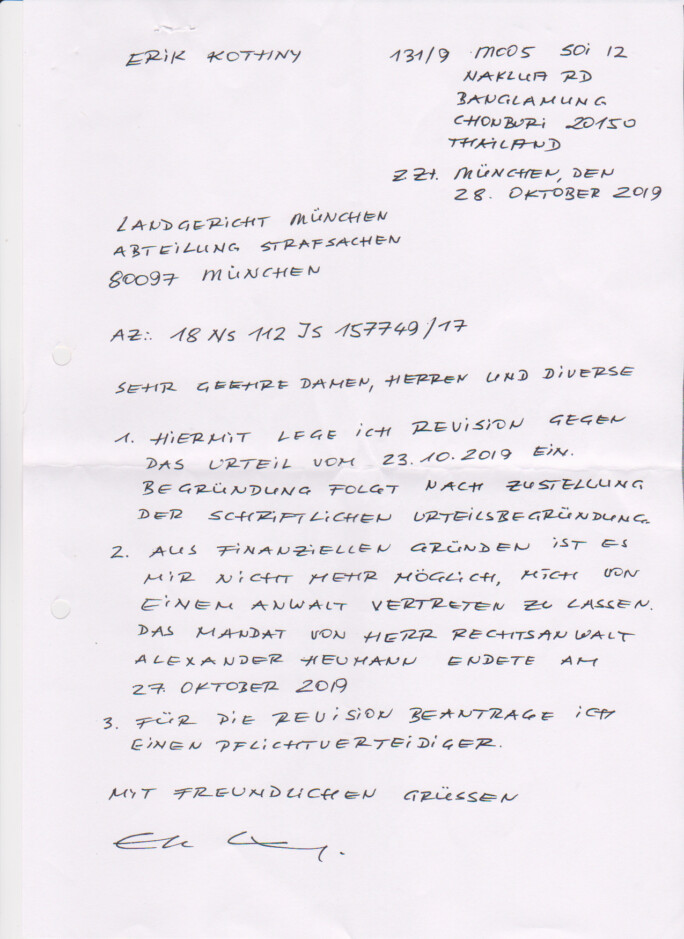 Verwerfung der Revision durch das Landgericht