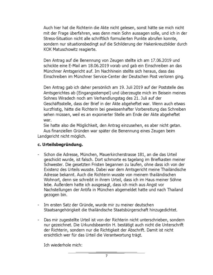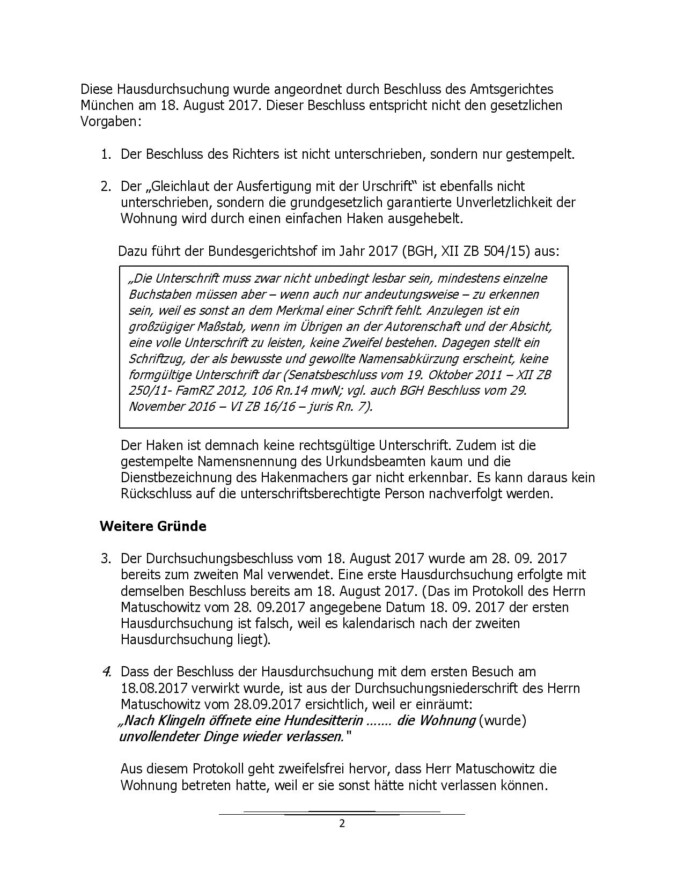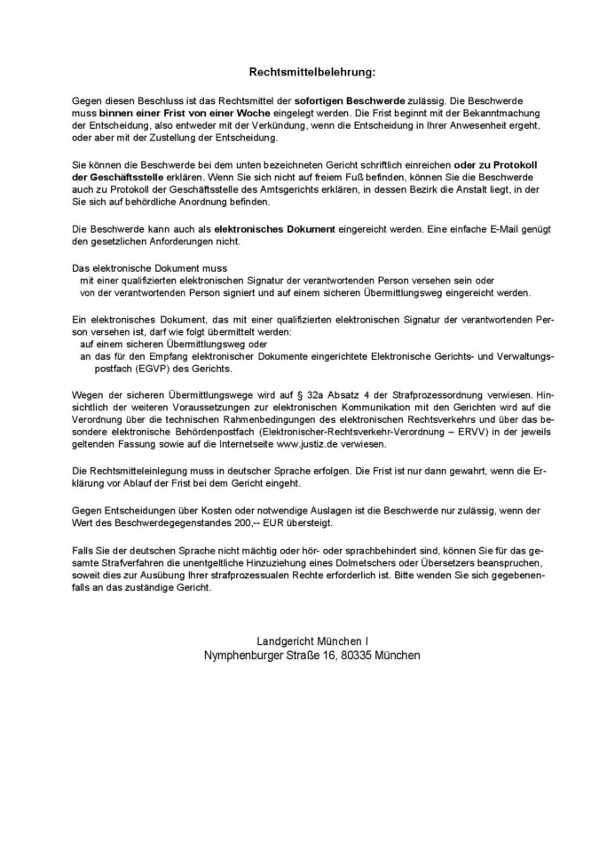 Antwort auf Beschluss Bayerisches Oberstes Landesgericht