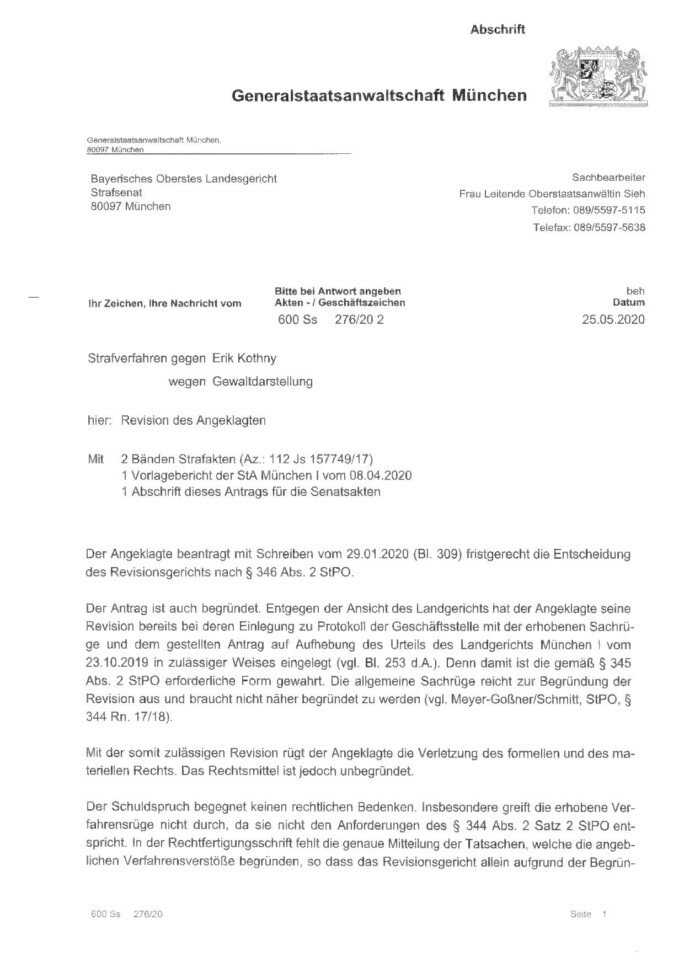 Antrag Generalstaatsanwalt