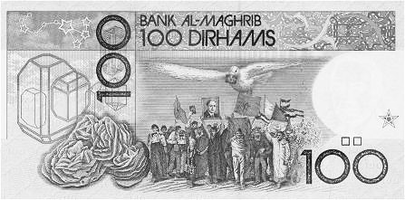 Eine Banknote bezeugt den legendären „grünen Marsch“, mit dem Marokko 1975 die Spanier aus der Westsahara vertrieb.