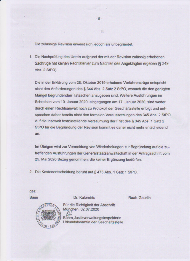 Das Oberste Bayerische Landesgericht, greift keines meiner Argumente auf und widerlegt es, sondern weist pauschal zurück, und erkennt darauf, dass es keine Rechtsfehler gegeben habe. (Satzbaukasten)
