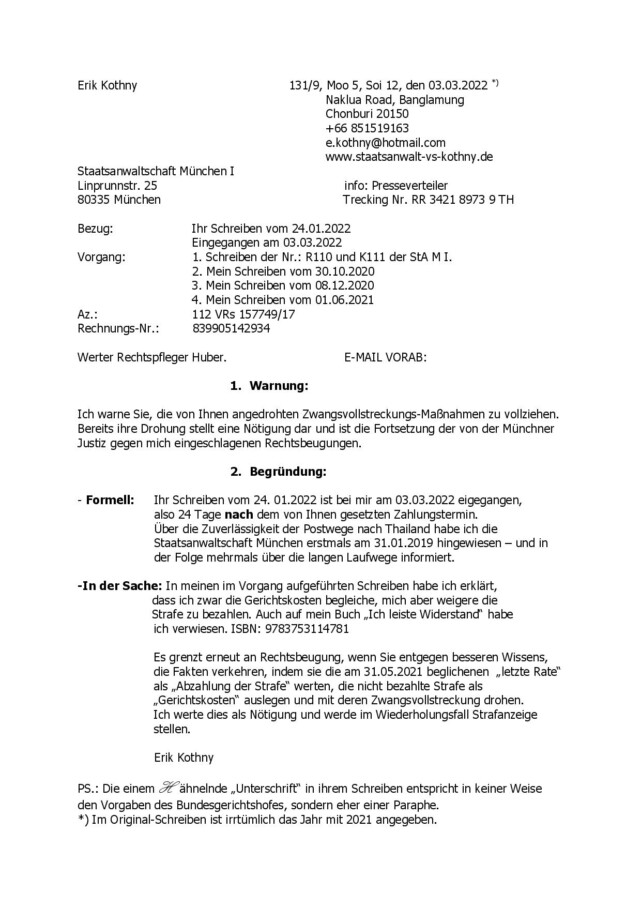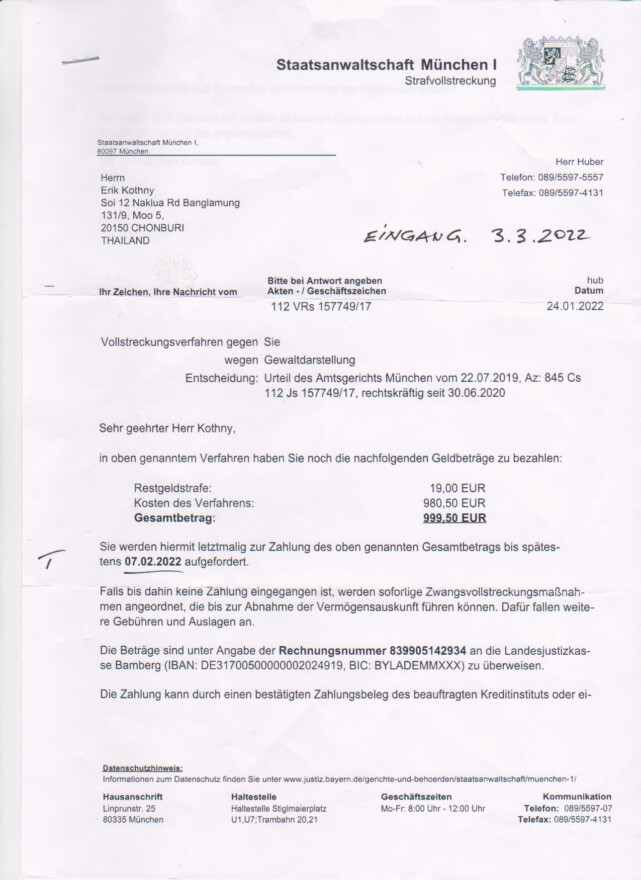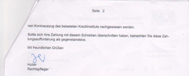 Androhung einer Pfändung durch Münchner Staatsanwaltschaft
