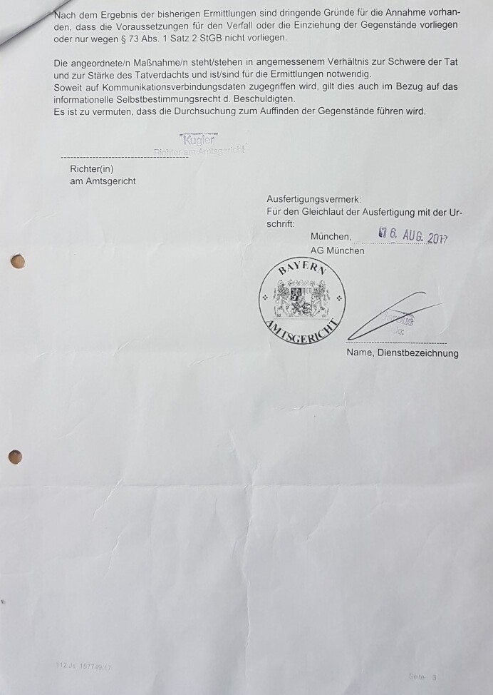 Anlage 8 Durchsuchungsniederschrift KK 44