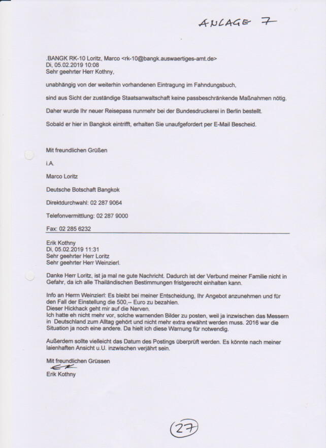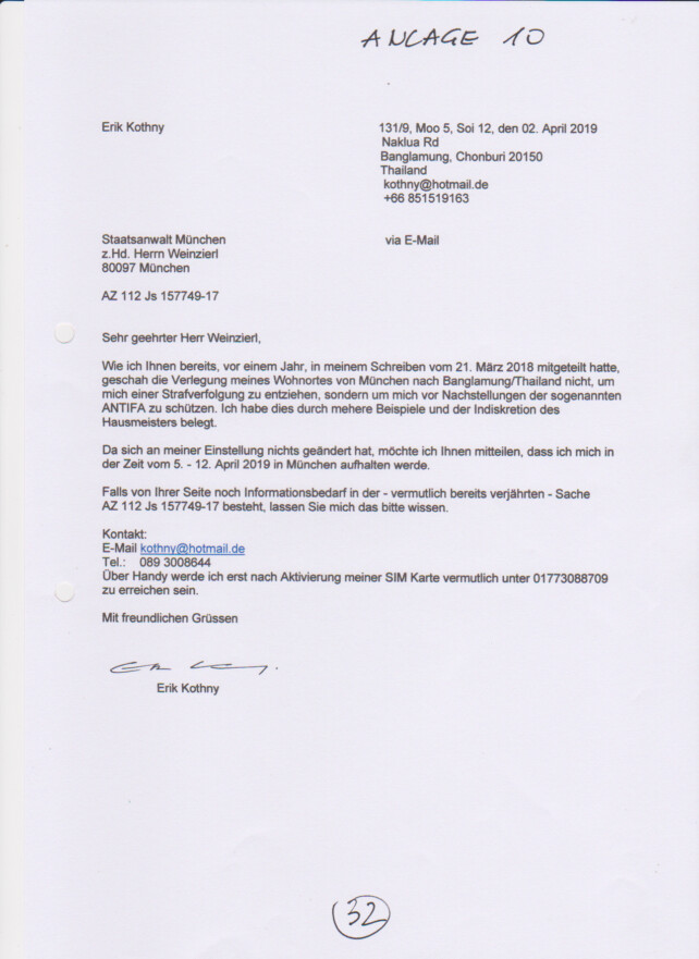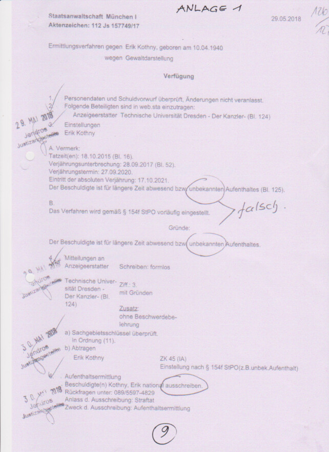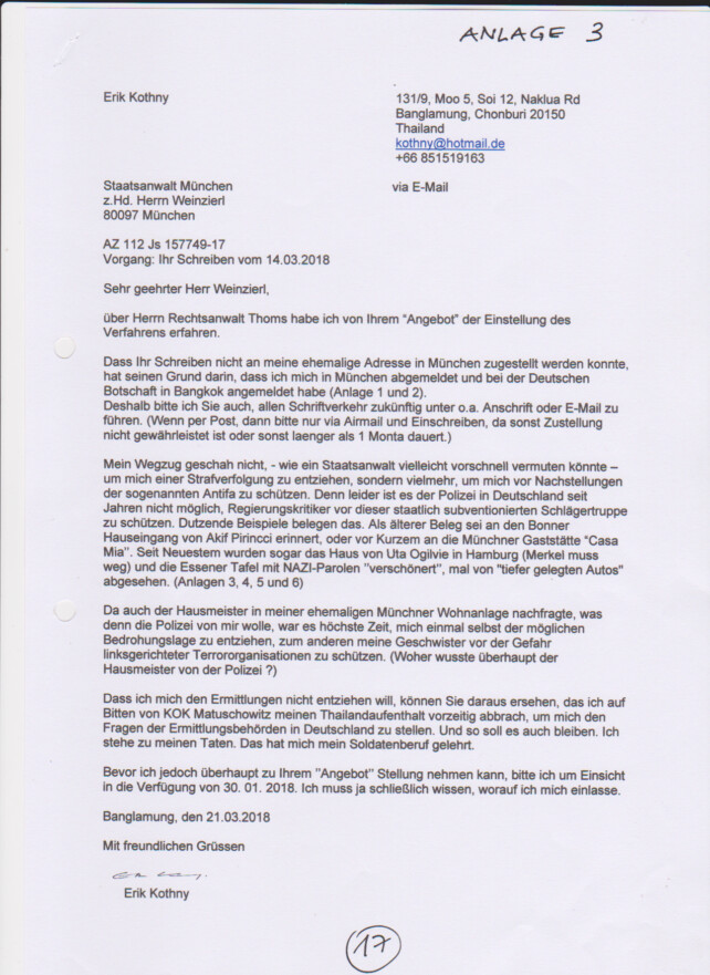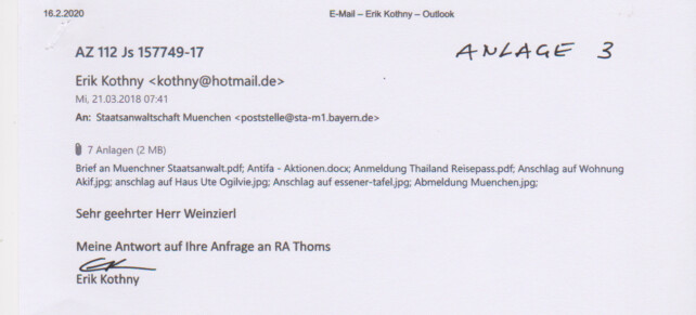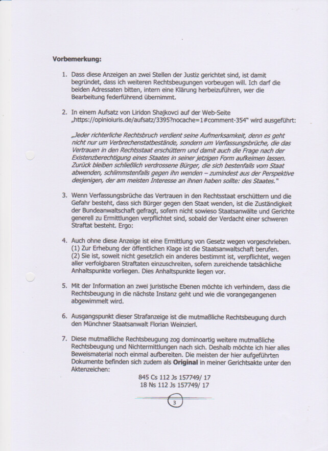 Nachtrag: Anzeige zu Aktenzeichen 18 Ns 112 Js 157749/17