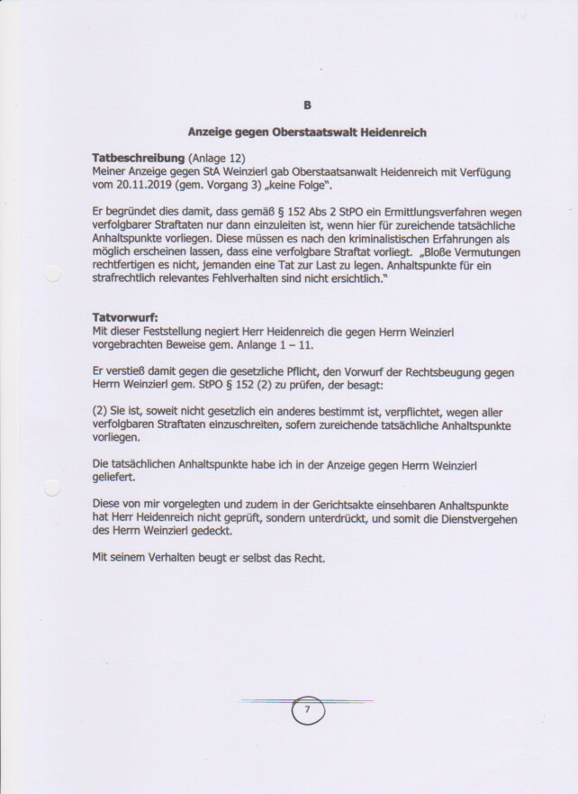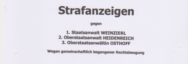 Anzeige StA, OStA, GenStA , Ablehung OStA, Gen StA, Bundesanwalt.