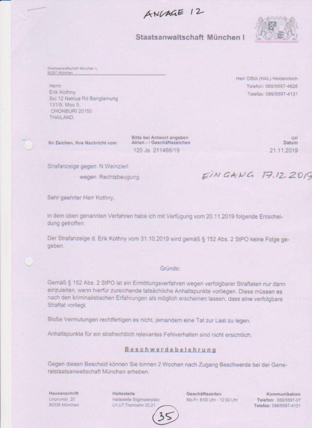 Beschwerde gegen Bescheid der StA München I