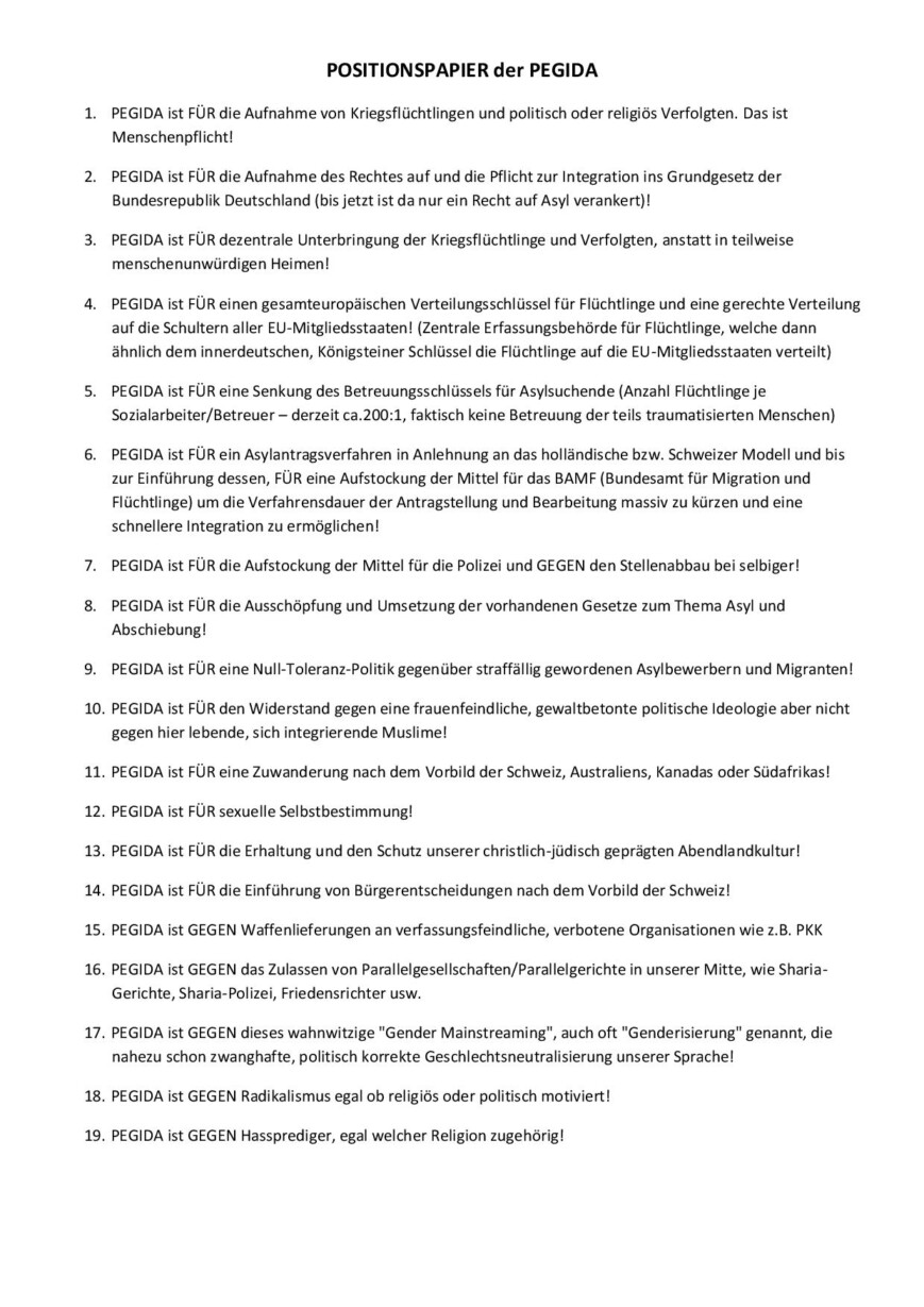 2. Was an den Pegida Papier verstösst gegen Gesetze.