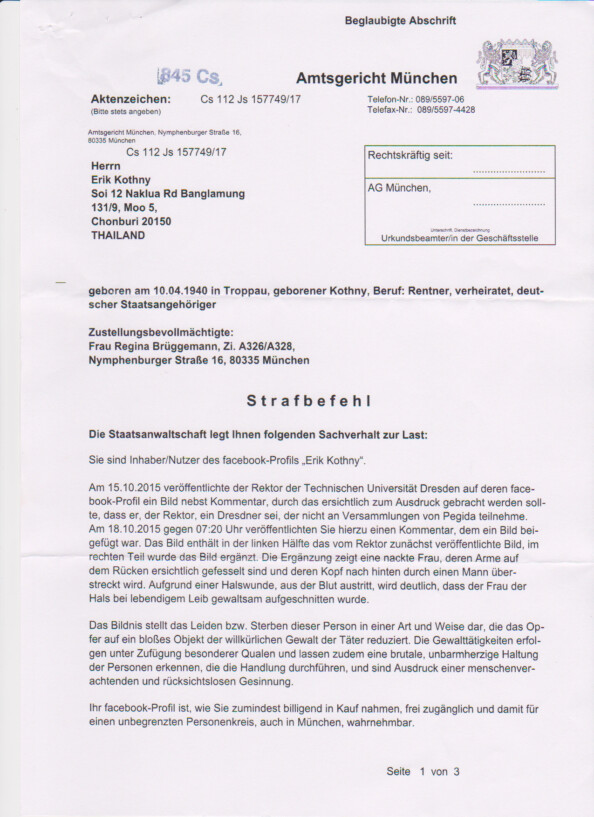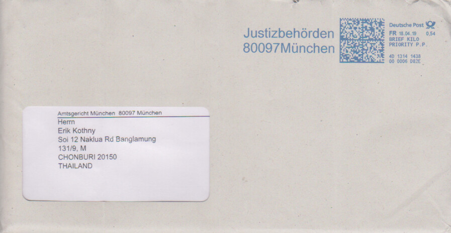 mit der Münchner Justiz haben Sie die dümmsten, faulsten und boshaftesten Justiz-Schergen am Bein. Genießen Sie das leben in Thailand und schließen Sie mit der BRD GmbH ab. Auch ich lebe seit 2015 im Exil und es geht mir jeden Tag besser. So werde ich den Tag noch erleben, an dem die Justiz-Schergen überrascht feststellen werden, daß der Mohamedaner die Justiz der BRD GmbH im gesammten gar nicht braucht. Und ich freu mich drauf. Mit freundlichen Grüßen - juergen_k_krebs@web.de
